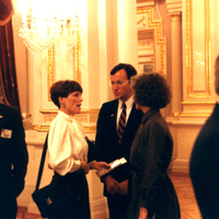 It originally appeared in an AuCoin family scrapbook documenting U.S. House Speaker Jim Wright's visit to Spain, the Soviet Union, and the Federal Republic of Germany in April 1987. The congressional delegation included Representative Les AuCoin and his wife Sue. Other members of congress on the trip included Tony Coelho, Dick Cheney, Jim Howard, Les Aspin, John Paul Hammerschmidt, Jim Scheuer, Lawrence Coughlin, Ralph Regula, Carrol Hubbard, Tom Downey, Norm Dicks, Wes Watkins, Mickey Leland, Steny Hoyer, Esteban Torres, and Sherwood Boehlert.