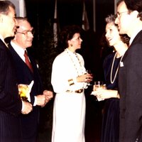 A photograph of Les & Susan AuCoin at a dinner given by the U.S. Ambassador to Germany for the U.S. Congressional Delegation.