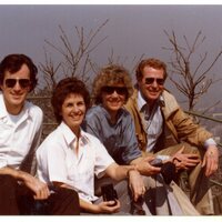 A photograph of Les and Susan AuCoin posing with another couple in China.