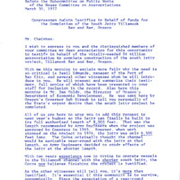 In a statement before the Subcommittee on Public Works of the House Committee on Appropriations, Congressman Les AuCoin advocated for $6 million in construction funding for the south jetty project in Tillamook, Oregon. Completion of the south jetty project would have benefited the commercial fishing industry. This is one of a collection of digitized objects from the Les AuCoin Papers (MS.147) at the Pacific University Archives. AuCoin served in the Oregon House of Representatives (1971-1975) and in the United States House of Representatives from Oregon's 1st District (1975-1993).
