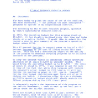 In a statement before the Agriculture and Related Agencies Subcommittee of the House Appropriations Committee, Congressman Les AuCoin advocated for additional funding for the filbert (i.e. hazelnut) research program managed by the United States Department of Agriculture's Agricultural Research Service.This is one of a collection of digitized objects from the Les AuCoin Papers (MS.147) at the Pacific University Archives. AuCoin served in the Oregon House of Representatives (1971-1975) and in the United States House of Representatives from Oregon's 1st District (1975-1993).