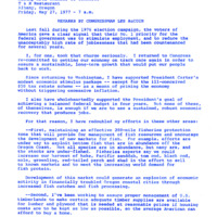 In a speech to the Albany Area Chamber of Commerce in Albany, Oregon, on May 27, 1977, Congressman Les AuCoin discusses the U.S. economy and international trade for World Trade Week, a week long event during the third week of May proclaimed annually by the president of the United States. Congressman AuCoin expressed his overall support for President Carter's economic stimulus package, though AuCoin explained how he is also personally advocating for the 200-mile fisheries protection zone to boost the fishing industry, better management of the U.S. timber industry to keep timber prices low, energy conservation and alternative power sources to stimulate a new power industry, and federal funding for housing development programs. AuCoin also expressed his support for international trade, including improving the U.S. China trade relationship, which in turn would benefit the U.S. and Oregon economies.This is one of a collection of digitized objects from the Les AuCoin Papers (MS.147) at the Pacific University Archives. AuCoin served in the Oregon House of Representatives (1971-1975) and in the United States House of Representatives from Oregon's 1st District (1975-1993).