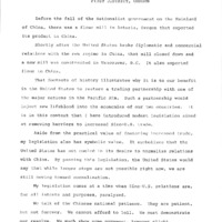 In a speech, Congressman Les AuCoin expressed his support for normalized trade relations between the United States and China. Specifically, AuCoin advocated for two bills he introduced to Congress: H.R. 8196 and H.R. 8197. The normalization of U.S.-China dimplomatic relations was a popular goal of the 1970s, and was formally recognized by the two countries in 1978. This is one of a collection of digitized objects from the Les AuCoin Papers (MS.147) at the Pacific University Archives. AuCoin served in the Oregon House of Representatives (1971-1975) and in the United States House of Representatives from Oregon's 1st District (1975-1993).