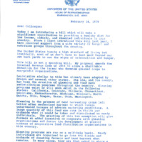 In a letter to a congressional colleague, U.S. Congressman Les AuCoin advocated for his proposed legislation to amend the Internal Revenue Code of 1954. Congressman AuCoin explained how his proposed amendment would "allow a charitable deduction for the farmer who donates gleaned crops to non-profit organization." Gleaning is the process of collecting leftover crops from a field that has already been commercially harvested. The proposed amendment aimed to encourage more farmers to donate gleaned crops, which in turn could be used to feed the hungry. Congressman AuCoin described how Oregon was a pioneer of modern gleaning in the 1970s in order to feed low income Oregonians. This is one of a collection of digitized objects from the Les AuCoin Papers (MS.147) at the Pacific University Archives. AuCoin served in the Oregon House of Representatives (1971-1975) and in the United States House of Representatives from Oregon's 1st District (1975-1993).