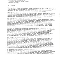 In a speech on the U.S. House floor, Congressman Les AuCoin advocated for his proposed bill to amend the Export-Import Bank Act of 1945 and the Trade Act of 1974. The proposed amendment addressed trading policy with communist countries, among other trading concerns. The bill never came to a vote. This is one of a collection of digitized objects from the Les AuCoin Papers (MS.147) at the Pacific University Archives. AuCoin served in the Oregon House of Representatives (1971-1975) and in the United States House of Representatives from Oregon's 1st District (1975-1993).