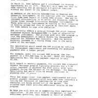 In a letter to a congressional colleague, U.S. Congressman Les AuCoin advocated for his bill, the Housing Opportunity Act of 1979. The bill aimed to increase the number of American home owners, with an estimated 8.5 million families benefiting. Congressman AuCoin explained how first time home buyers were struggling with the increases in home prices. As part of the letter, he also attached a "Fact Sheet on the Housing Opportunity Act of 1979." This is one of a collection of digitized objects from the Les AuCoin Papers (MS.147) at the Pacific University Archives. AuCoin served in the Oregon House of Representatives (1971-1975) and in the United States House of Representatives from Oregon's 1st District (1975-1993).
