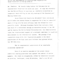 Testimony of U.S. Congressman Les AuCoin regarding House Concurrent Resolution 92 before the Subcommittee on International Organizations House Committee on Foreign Affairs. Before the subcommittee, Congressman AuCoin advocated for the resolution, which he sponsored, arguing for negotiations for "an indefinite moratorium on commercial whale killing at the July meeting of the International Whaling Commission." House Current Resolution 92 of the 96th Congress never came to a vote, but the International Whaling Commission did vote to execute a pause on commercial whaling in 1982. This is one of a collection of digitized objects from the Les AuCoin Papers (MS.147) at the Pacific University Archives. AuCoin served in the Oregon House of Representatives (1971-1975) and in the United States House of Representatives from Oregon's 1st District (1975-1993).