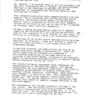 A statement by U.S. Congressman Les AuCoin upon the introduction of the Maritime Education and Training Act of 1979. In his speech, Congressman AuCoin advocated for the legislation, explaining how it dealt "comprehensively with the federal role in educating and training merchant marine officers." The bill eventually became law. This is one of a collection of digitized objects from the Les AuCoin Papers (MS.147) at the Pacific University Archives. AuCoin served in the Oregon House of Representatives (1971-1975) and in the United States House of Representatives from Oregon's 1st District (1975-1993).