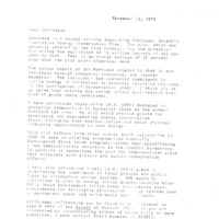 A letter by U.S. Congressman Les AuCoin to a congressional colleague regarding his proposed legislation, H.R. 5640 and H.R. 5641, and Portland's Energy Conservation Plan. Congressman AuCoin explained how H.R. 5640 would aim to encourage cities to formulate energy conservation goals in the manner Portland did with their Energy Conservation Plan. He also explained how H.R. 5641 was "aimed at stimulating the commitment of local private and public funds to alternative energy systems." At the end of his letter, Congressman AuCoin attached an article by Philip Hager for the Los Angeles Times describing Portland's Energy Conservation Plan. This is one of a collection of digitized objects from the Les AuCoin Papers (MS.147) at the Pacific University Archives. AuCoin served in the Oregon House of Representatives (1971-1975) and in the United States House of Representatives from Oregon's 1st District (1975-1993).