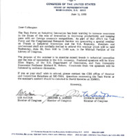 Invitation given to congressional colleague for a seminar on industrial innovation in the U.S. economy
