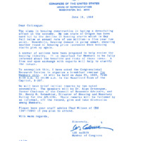 A letter to a congressional colleague from U.S. Congressman Les AuCoin inviting them to a breakfast seminar on the U.S. housing industry organized by the Congressional Research Service. In his letter, Congressman AuCoin described concerns with the housing industry, including a decline in housing construction which he stated had notably affected his home state of Oregon. The seminar was held on June 25, 1980. This is one of a collection of digitized objects from the Les AuCoin Papers (MS.147) at the Pacific University Archives. AuCoin served in the Oregon House of Representatives (1971-1975) and in the United States House of Representatives from Oregon's 1st District (1975-1993).