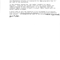 A short statement by U.S. Congressman Les AuCoin for the Extension of Remarks section of the Congressional Record regarding timber-related industries, especially that of Oregon, given on June 30, 1980. In his statement, Congressman AuCoin briefly described the role that the lumber industry had in employing Oregonians, and the impacts of the recession on the industry. He also shared an article from the Daily Journal of Commerce from Portland, Oregon to be inserted in the Extension of Remarks. The article is titled "Steep climb in lumber prices forecast by industry leader" and was published on June 3, 1980. This is one of a collection of digitized objects from the Les AuCoin Papers (MS.147) at the Pacific University Archives. AuCoin served in the Oregon House of Representatives (1971-1975) and in the United States House of Representatives from Oregon's 1st District (1975-1993).
