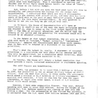 A speech by US Congressman Les AuCoin delivered to the Western States Chiropractic College in Portland, Oregon on May 2, 1981. In his speech, Congressman AuCoin discussed the federal budget resolution for 1982 and his concerns about how Reaganomics would negatively affect higher education and the quality and quantity of health care, all while increasing funding for defense spending.