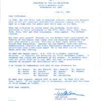 A letter from US Congressman Les AuCoin to a congressional colleague asking for their support for his bill, HR3595 - A bill to amend the Voting Rights Act of 1965 to provide a uniform time for the closing of the polling places in all elections of the electors of the President and Vice President of the United States, to prevent the release of election results before polling places have closed, and for other purposes. The letter was signed June 11, 1981, and the legislation was notably introduced following the 1980 presidential election, when Jimmy Carter conceded the election before polls closed on the West Coast. AuCoin also attached an excerpt from the congressional record that contained his House floor speech regarding his bill on May 14, 1981.
