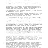 A letter by US Congressman Les AuCoin to a congressional colleague advocating for his bill, H.R. 4146 - A bill to amend the Internal Revenue Code of 1954 to limit the application of the subsidized energy financing limitations on certain tax credit to Federal subsidies, and for other purposes. In his letter, dated October 8, 1981, Congressman AuCoin explains how the bill would fix issues under the Windfall Profits Tax Act and ensure support for "state and local governments in their efforts to stimulate energy conservation and the development of renewable energy sources and encourage other states and localities to do the same." The letter is signed by both Congressman AuCoin and Congressman Cecil Heftel.