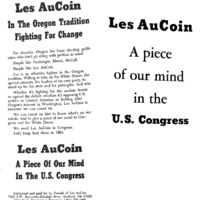 "Les AuCoin -- A piece of our mind in the U.S. Congress" 1984 campaign brochure