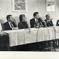 A photograph of US Congressman Les AuCoin and his wife Sue at a press conference in the 1980s.