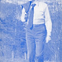 A photograph of US Congressman Les AuCoin out in nature, eventually used in a postcard for his first campaign for Oregon's 1st Congressional District in 1974.