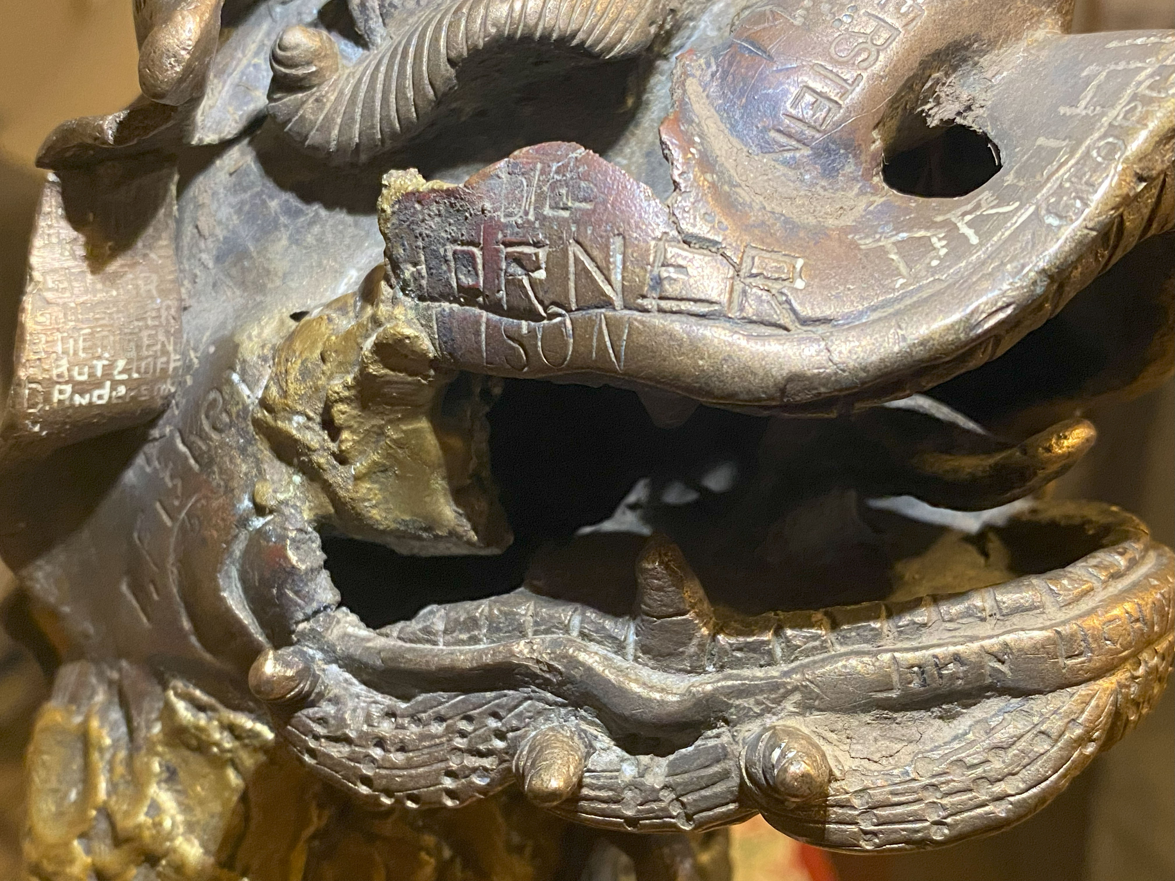 Boxer is a bronze statue in the form of a qilin, which was the inspiration for Pacific University's mascot. There was a tradition of students stealing, hiding and fighting over the original Boxer statue from the early 1900s through the 1960s. This image is one of a series of photographs that documented the physical appearance of the statue when it was returned to the university in 2024, after being hidden for the previous 55 years.