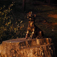 Boxer posed on a tree stump. See also PUApic_015724 and PUApic_015725.