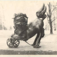 Photograph of the statue Ming, which a group at the University tried to use as a replacement for Boxer when the Boxer statue went missing for an extended period in the 1940s.