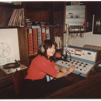 A Pacific University student broadcasts at the Boxer Radio station on campus in the 1980's