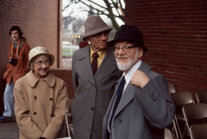 Several older attendees (possibly donors) at the dedication of Pacific University's "Chemistry Unit of the Science Complex," later named Murdock Hall. This event took place on January 22, 1981. According to the student newspaper: "The new chemistry unit features 24 person stations in two laboratories and 12 stations in another lab" (The Index, Jan. 16, 1981). This is one of a set of images taken at the dedication.
