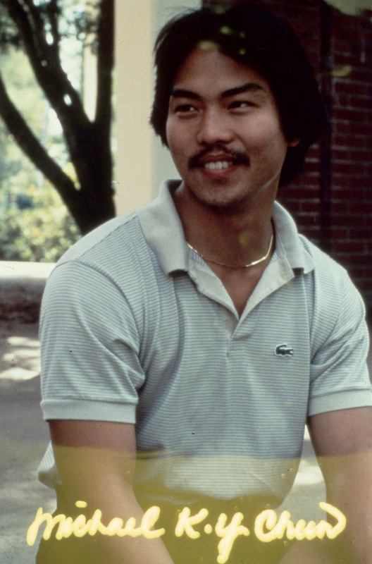 A portrait of Michael K. Y. Chun, who was a Pacific University student (Class of 1984) at the time this photograph was taken. Chun apparently signed the negative. This was likely taken by a Pacific staff photographer for use in a campus publication. The original slide was printed in September, 1983. Based on other images from the same set, the photograph from which it was derived was probably taken earlier in that year.