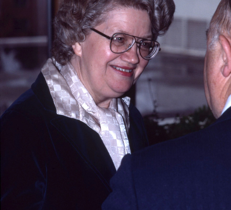 Dorothy Pennington, Secretary of Pacific University's Board of Trustees, attending a Trustees meeting on the third floor of Marsh Hall. This is one of a set of photographs that were all taken during the same meeting. The original slide was printed in March, 1979.