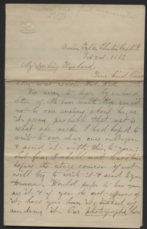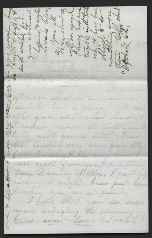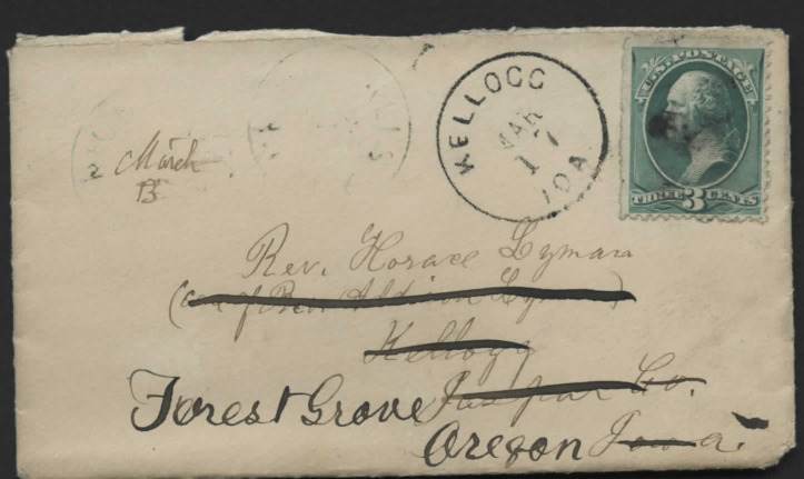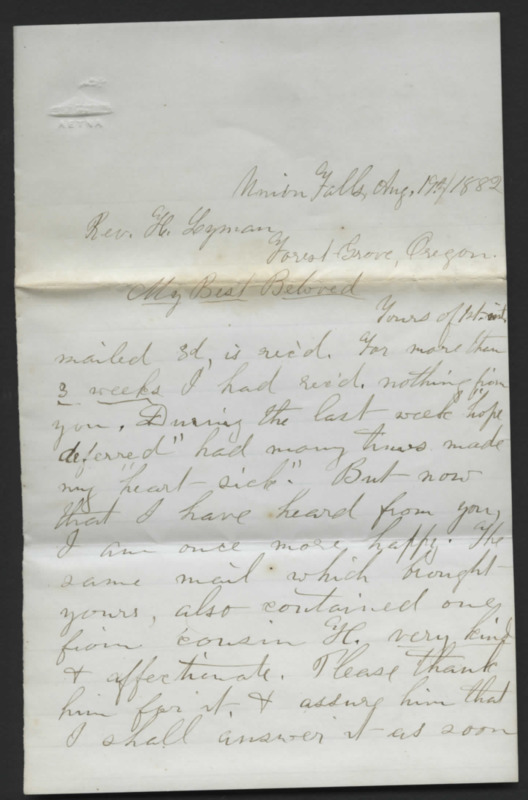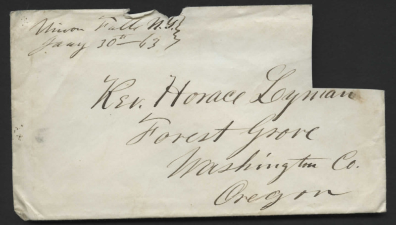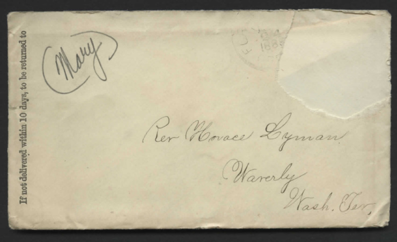 The letter is unsigned, but the writer has been identified as Elizabeth Theresa Boise (1826-1904) by researcher Brian W. Johnson. Boise was an unmarried woman teacher who immigrated from Massachusetts to Oregon in 1853-54. At the time this letter was written, she was likely teaching in or near Salem. She had known Mary Denison Lyman for at least nine years. Mary's husband, Rev. Horace Lyman, had been the head teacher at La Creole Academy near Dallas, Oregon, circa 1855, while Elizabeth was the assistant teacher. The "Reuben" mentioned in this letter was Elizabeth's brother, Judge Reuben Boise; and the "Ellen" mentioned was Reuben's wife, Ellen Frances Lyon Boise.