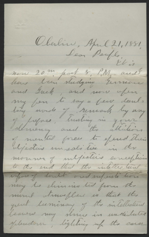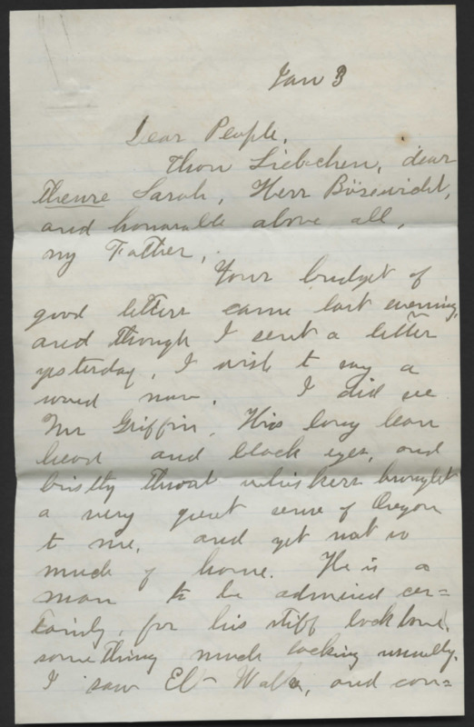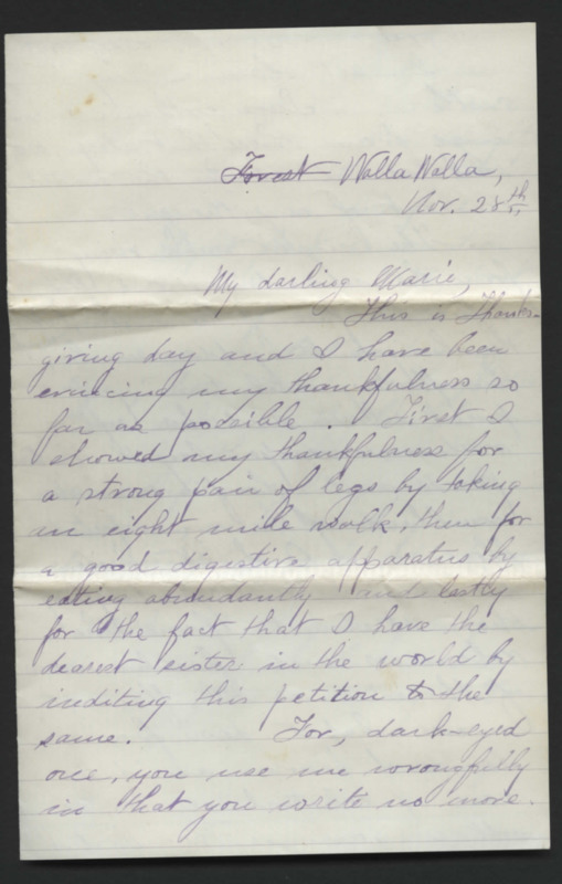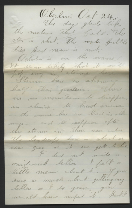 Letter from James Lyman, brother of Reverend Horace Lyman, to Marie, who was likely his sister Mary Frances. He writes from school, and discusses Thanksgiving and poetry.