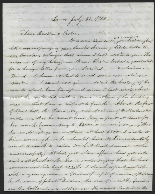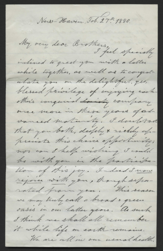 Letter from Josiah Lyman to his brothers, Reverend Horace and Addison Lyman. He discusses the other two brothers visiting, mourns his inability to join them, and requests news.