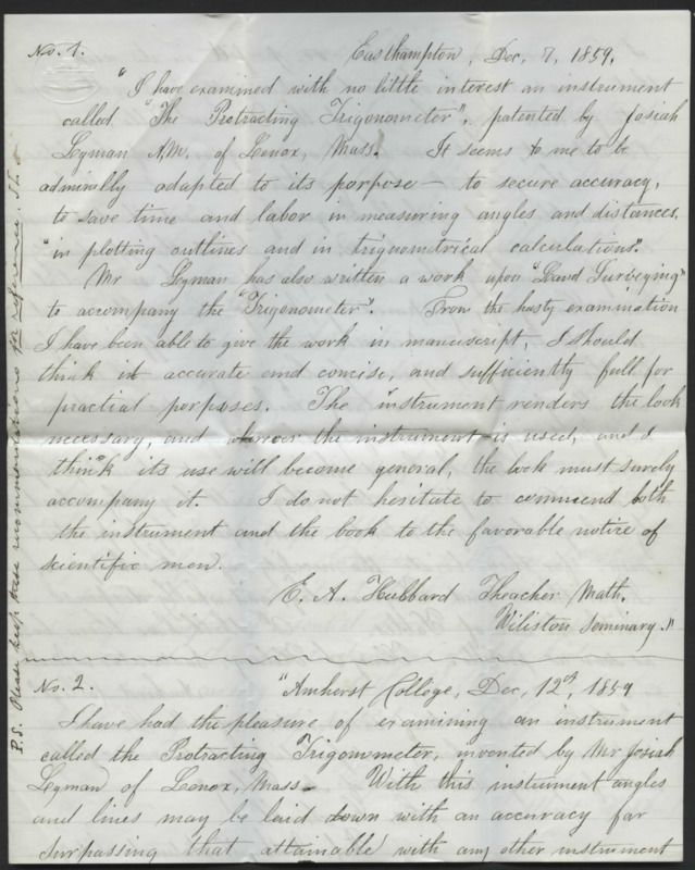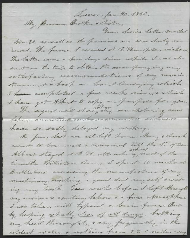 Letter from Josiah Lyman to his brother and sister-in-law, Reverend Horace and Mary Denison Lyman. He discusses family health, the death of a friend, a farmer pupil named John W. Mack, a telescope he created, and income.
