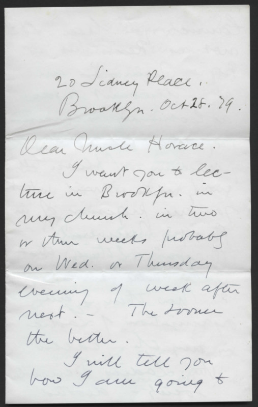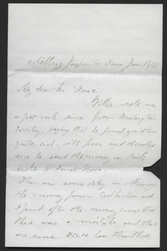 Letter from Addison Lyman to his brother, Reverend Horace Lyman. He discusses collecting money owed to Horace and inquiring after his brother's recent illness.
