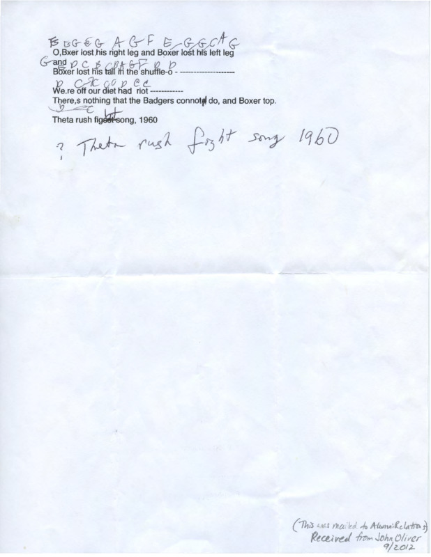 A letter was sent to a possible owner of one of the last known pieces of the original Boxer mascot. In the letter the different 'toss outs' were mentioned, along with the many trips the Boxer has taken around the country and world. In the hopes of having the Boxer pieces returned to Pacific the student writes how the pieces will be displayed for past, current and future students to enjoy and learn about the major events of the original Boxer mascot.