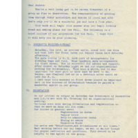 A letter to the incoming 1960 Boxerette Presidnet, Jackie Holbert from the outgoing 1959 President, Barbara Boates. The Boxerettes were an honorary service organization made up of women from Pacific University. The letter discusses responsibilities and expectations for the incoming President as well an outline of the events that the group hosted the previous year. Some of the events included the Boxerette Weekend retreat, Freshman Orientation, the Boxerette Mixer, Homecoming, and the Wassail Holiday Party. The letter comes from the collection of documents, the Boxerette Review which contains various documents of the boxerettes from 1951 to 1966.