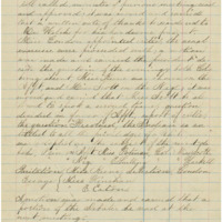 The Philomathean Society is a woman's Greek letter organization that was founded in 1871. Their members were, and still are referred to as Philos. In 1924, the group changed its name to the Phi Lambda Omicron Sorority, which is what it is referred to as today. In the 19th and early 20th century the organization mainly focused on debates, reading and music. The minutes from the weekly meeting of the Philomathean Society on January 3rd, 1873, written by secretary Lulu Donnel, include a description of calling the meeting to order, roll call, and approving the previous meetings minutes by the President, Mary Goodell. The document outlines the debate held at the meeting held between Maggie Keene, who argued the Affirmation, and Ella Scott, who argued the Negation. The topic they debated was, 'Resolved, the Indian is entittled to all the priviledges of a White man.' This document was extracted from a collection of the minutes of the Philmathean society from 1871 to 1879, written by hand in a single document.