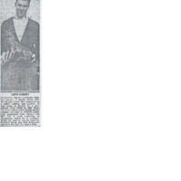- 'Let's Fight!' news clipping from the Morning Oregonian, on Alpha Zeta members stealing Boxer from a Pacific University alumnus. The illustration shows Al Lemcke (Pacific University Class of 1936), who was a football player and a member of Alpha Zeta, holding the Boxer statue. For a related article, see PUA_MS95_36.