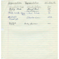Handwritten list of Pacific University organizations and their representatives for Boxer Funds