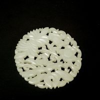 - A flat, rounded jade object carved with an intricate flower and bamboo pattern that gives the appearance of lace. Collected in Shanghai, China between 1982 and 2011.