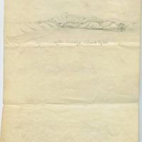Drawing by Pherne Brown Pringle, the daughter of Tabitha Moffatt Brown, the 'Mother of Oregon.' This sketch features the scenery after leaving the Black Hills in Wyoming, perhaps Laramie Peak, during her family's journey on the Oregon Trail. Copies of later drawings were accompanied in an album by journal entries of Pherne's husband, Virgil K. Pringle.