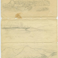 Drawing by Pherne Brown Pringle, the daughter of Tabitha Moffatt Brown, the 'Mother of Oregon.' This sketch features the scenery in Kansas, along the Blue Earth River, during her family's journey on the Oregon Trail. Copies of later drawings were accompanied in an album by journal entries of Pherne's husband, Virgil K. Pringle.