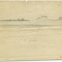 Drawing by Pherne Brown Pringle, the daughter of Tabitha Moffatt Brown, the 'Mother of Oregon.' This sketch features a view of the Continental Divide during her family's journey on the Oregon Trail. Copies of later drawings were accompanied in an album by journal entries of Pherne's husband, Virgil K. Pringle.