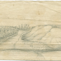Drawing by Pherne Brown Pringle, the daughter of Tabitha Moffatt Brown, the 'Mother of Oregon.' This sketch features the scenery around May 11th in Kansas during her family's journey on the Oregon Trail. Copies of later drawings were accompanied in an album by journal entries of Pherne's husband, Virgil K. Pringle.