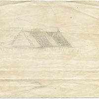 Drawing by Pherne Brown Pringle, the daughter of Tabitha Moffatt Brown, the 'Mother of Oregon.' This sketch appears to picture tents used by the pioneers during her family's journey on the Oregon Trail. Copies of later drawings were accompanied in an album by journal entries of Pherne's husband, Virgil K. Pringle.