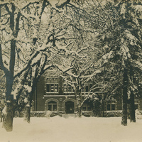 The silver gelatin print postcard is addressed to a Mrs. Maude Shannon Tongue in Los Angeles, California from her sister, in it she relays the state of the weather and details concerning family. The photograph on the postcard features Marsh Hall in the snow during the winter of 1908, in Forest Grove. This photograph was one of a group that once belonged to the Tongue family of Hillsboro. Several members of the family attended Pacific University and Tualatin Academy between 1863-1920.