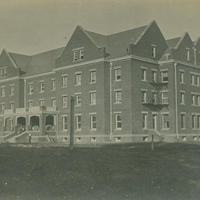 Silver gelatin print of the second Herrick Hall after construction, taken from an angle.The second Herrick Hall replaced the orignal girls dormitory, Herrick Hall around 1905. This photograph was one of a group that once belonged to the Tongue family of Hillsboro. Several members of the family attended Pacific University and Tualatin Academy between 1863-1920.