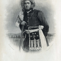 An engraved portrait of the pioneer and mountain man Joseph Lafayette Meek. From about 1828-1840, Meek was a fur trapper in the Rocky Mountains. In 1840, he joined a group of pioneers who were on their way to Oregon. He established a farm north of present-day Hillsboro in the Tualatin Valley and became prominent in Oregon's territorial government. The engraving is by J. C. Buttre based on a photograph by Joseph Bucktel. It appeared as the frontispiece to a book by Mrs. Frances Fuller Victor, 'The River of the West. Life and Adventure in the Rocky Mountains and Oregon...' (Hartford, Conn: Columbian Book Company, 1870).