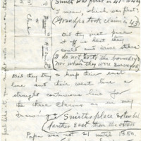 Answers from Ernest Clark Brown in response to questions from his sister, Liberta Brown. He discusses the locations, boundaries, and dates of the Stokes, Orus Brown, and A.T. Smith land claims in Forest Grove, Oregon. The notes include a basic hand-drawn map of the claims. Ernest also discusses how during the California Gold Rush, his father and someone named 'Inyart' went to Astoria to mill lumber.