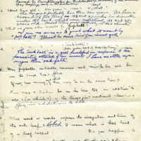 Answers from Ernest Clark Brown in response to questions from his sister, Liberta Brown Schoch. He discusses the large oaks on the Pacific University campus, specifically regarding their age, leaves, and the spread of that species of oak.